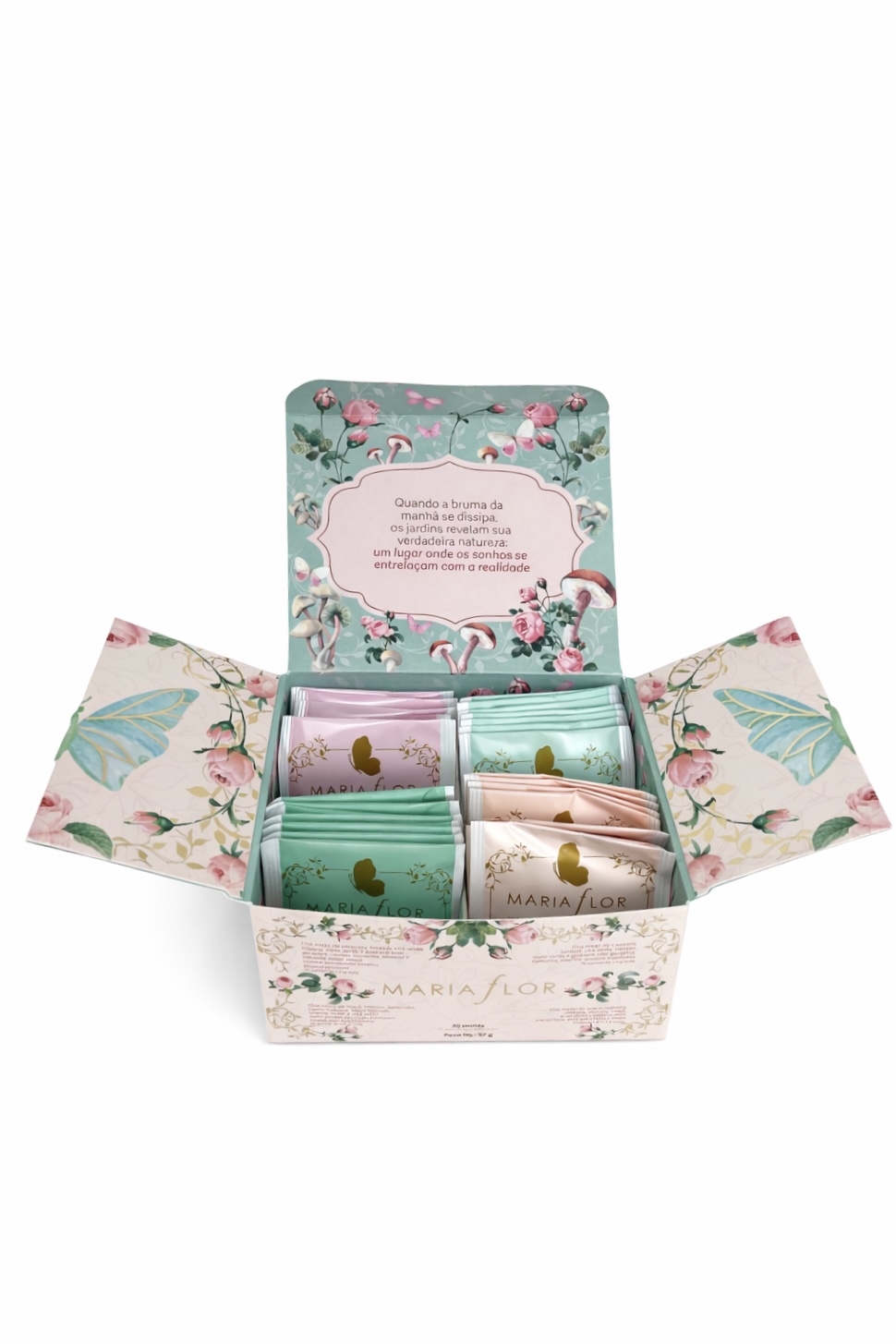 Chá Maria Flor vem com 4 sabores, sendo 10 sachês de cada. peso líq. 57g