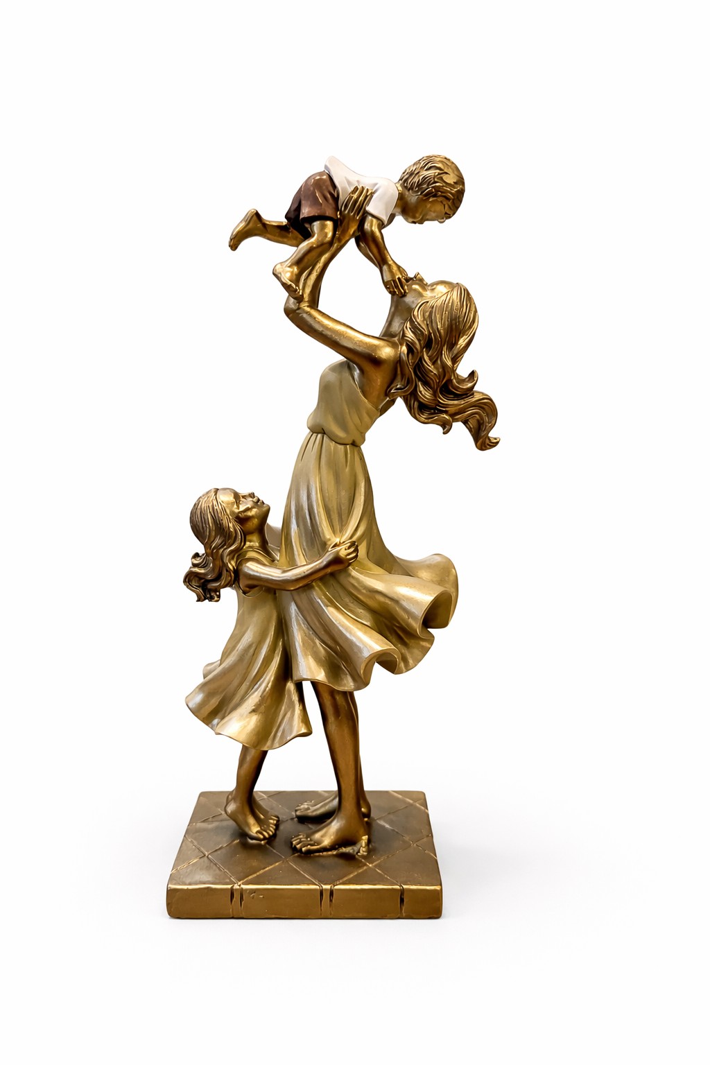 Estatueta em resina representando uma mãe carinhosa ao lado de seu casal de filhos, transmitindo amor, cuidado e união familiar. Com detalhes delicados e acabamento refinado, a peça celebra os laços afetivos e é perfeita para decoração ou presente especial.