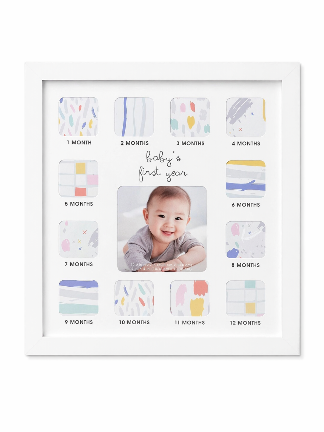 Porta-retrato infantil personalizado, pensado para registrar o crescimento do bebê ao longo de seu primeiro ano.
